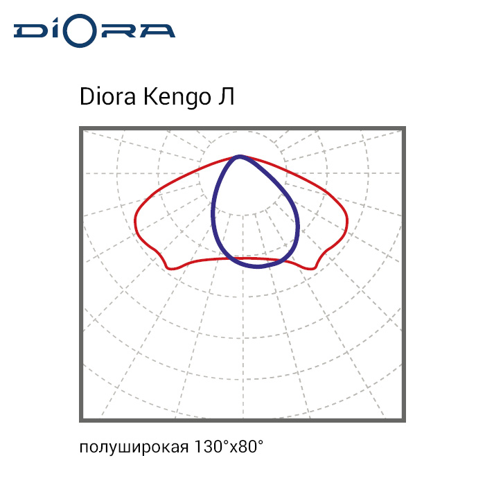 Кривая силы света (КСС) — широкая равномерная. Такая диаграмма распределения светового потока идеально подходит для освещения территорий с равномерным рельефом: парковок, складских площадок, придомовых территорий.