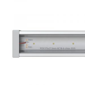 Светильник оснащен призматическим рассеивателем, который обеспечивает равномерное распределение света без слепящего эффекта. Модель создана на базе современных LED-компонентов с высокой световой отдачей – от 130 до 200 лм/Вт.