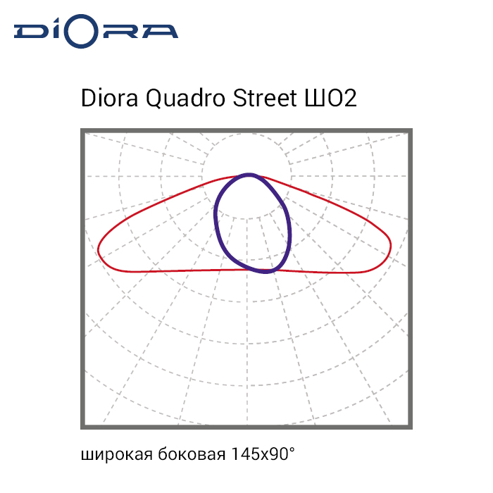 - Кривая силы света (КСС): ШО2 (широкая осевая) – равномерное распределение света вдоль дороги