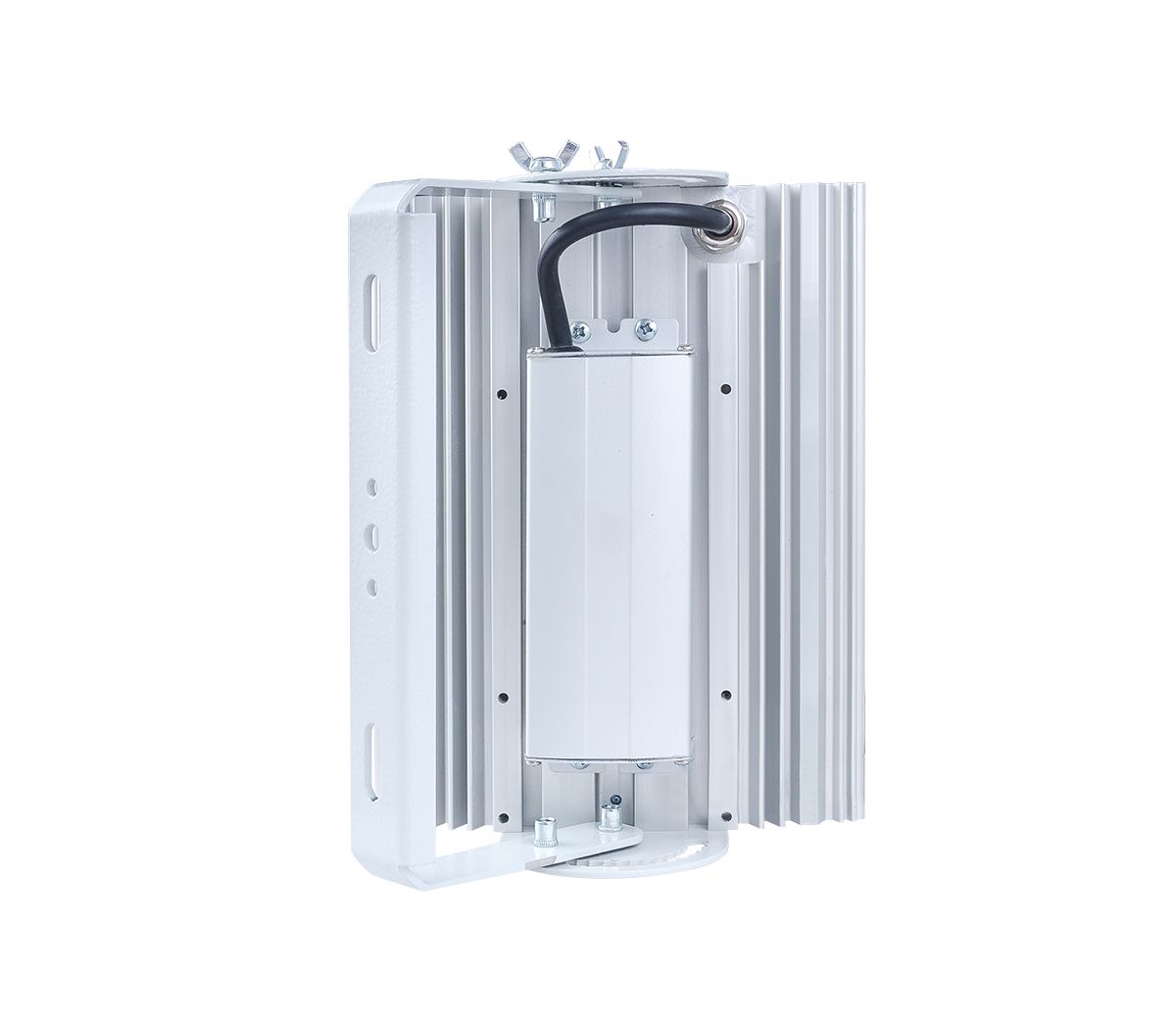 Кривая силы света (КСС): глубокая косинусная. Это распределение светового потока позволяет равномерно освещать большие территории с высоты установки, избегая слепящих эффектов и теневых зон. По российской классификации такая КСС оптимальна для освещения промышленных территорий и открытых пространств.