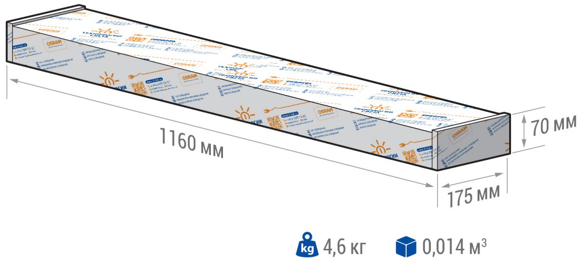- Кривая силы света: Д (двойная) — распределение светового потока в двух направлениях, идеально подходит для освещения высоких помещений и уличных территорий