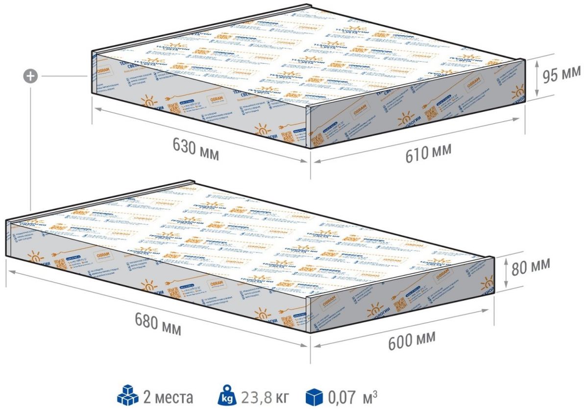 - Световой поток: 69550 Лм — гарантирует яркое, равномерное освещение производственных помещений, складов и других объектов. Вы получаете профессиональное освещение, соответствующее всем нормам.