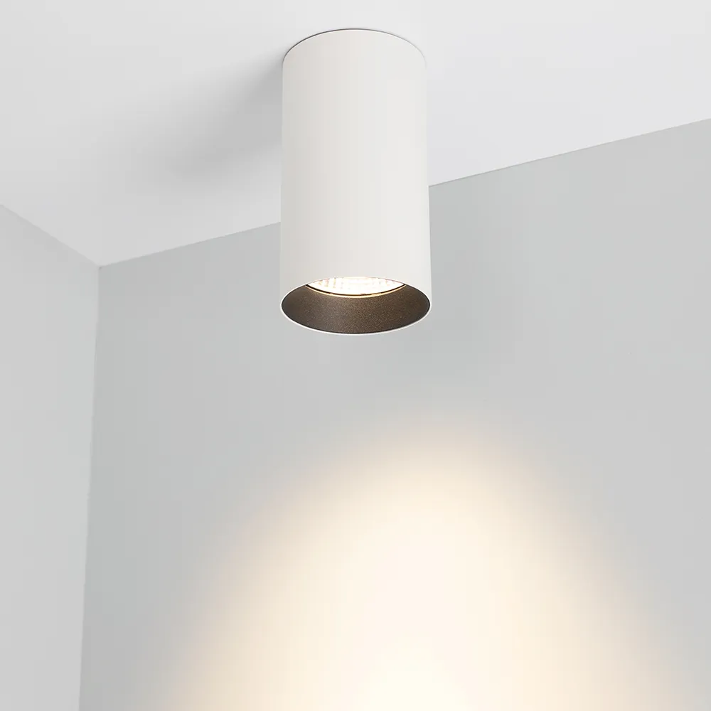 Металлический корпус обеспечивает надежное охлаждение светодиодов и продлевает срок службы оборудования. Двухцветное исполнение (белый корпус с черным кольцом) позволяет органично вписать светильник в любой интерьер.