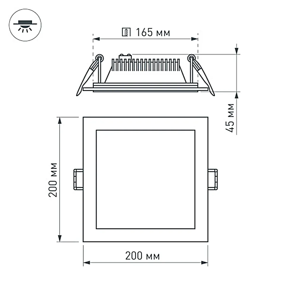 Основное преимущество этой светодиодной панели — оптимальное соотношение мощности и светового потока. При компактных размерах 200х200 мм она обеспечивает яркое и равномерное освещение офисных помещений, торговых залов или производственных площадей.