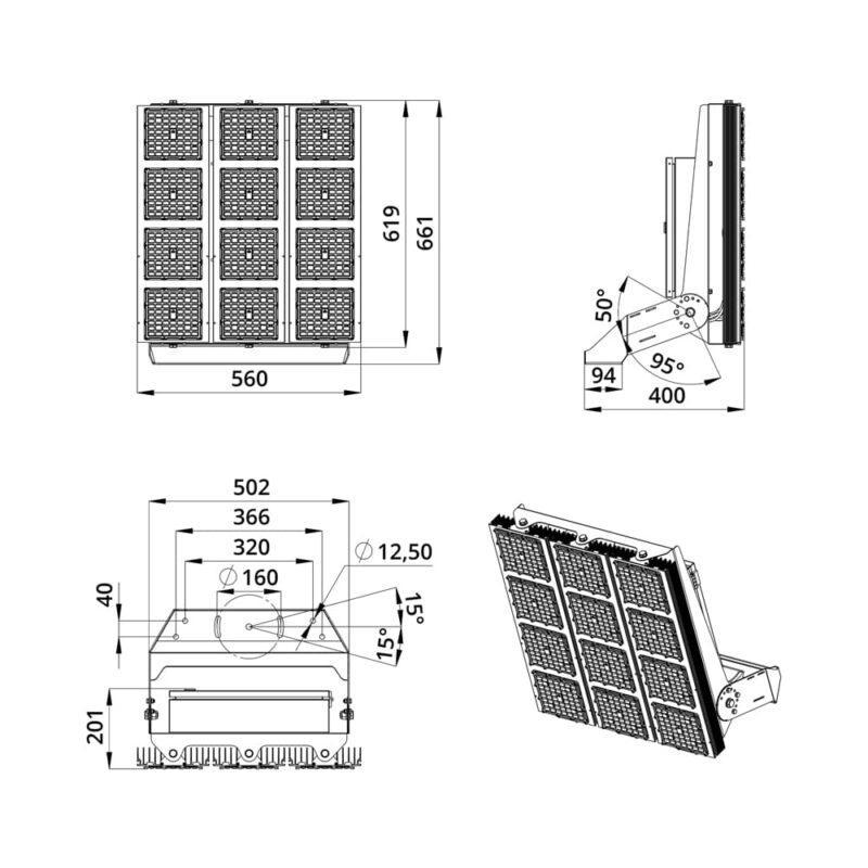 - Световой поток 145 000 Лм – равномерное освещение всей площади без темных зон
