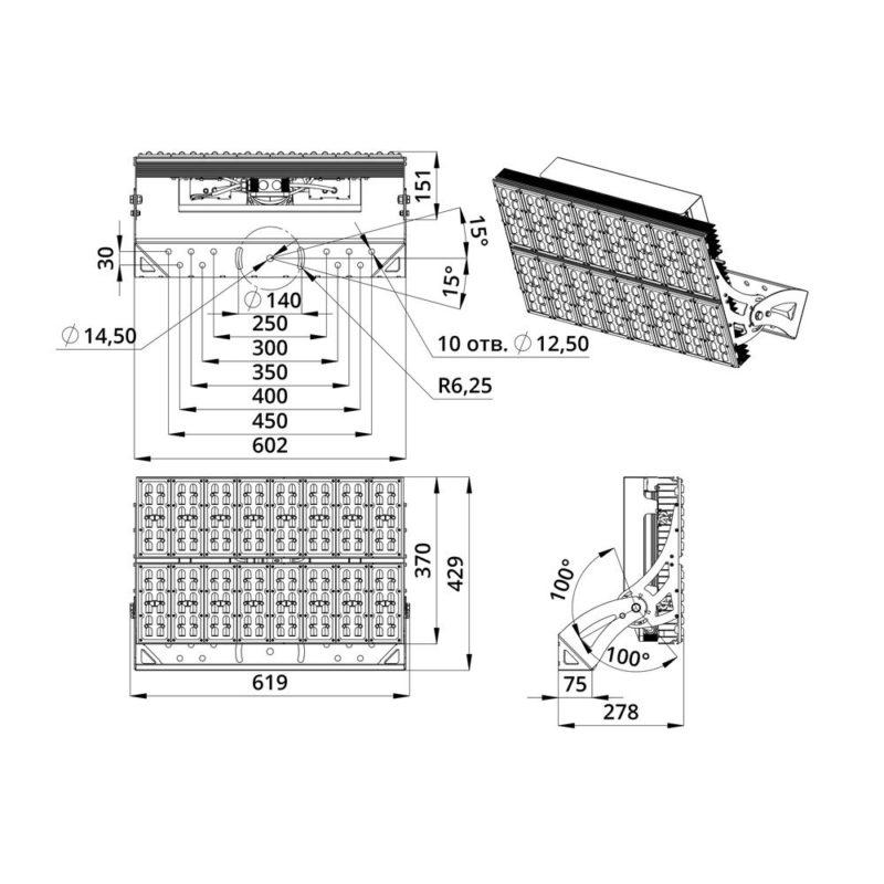 - Мощность: 600 Вт. Высокая мощность позволяет эффективно освещать большие площади без использования дополнительных светильников