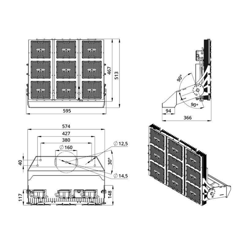 - Световой поток 93750 Лм – обеспечивает яркое равномерное освещение больших территорий