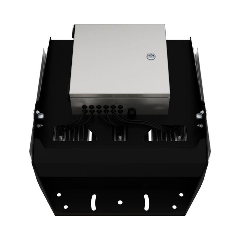 - Мощность: 750 Вт — высокая мощность позволяет эффективно освещать большие площади, заменяя устаревшие натриевые светильники мощностью до 2000 Вт