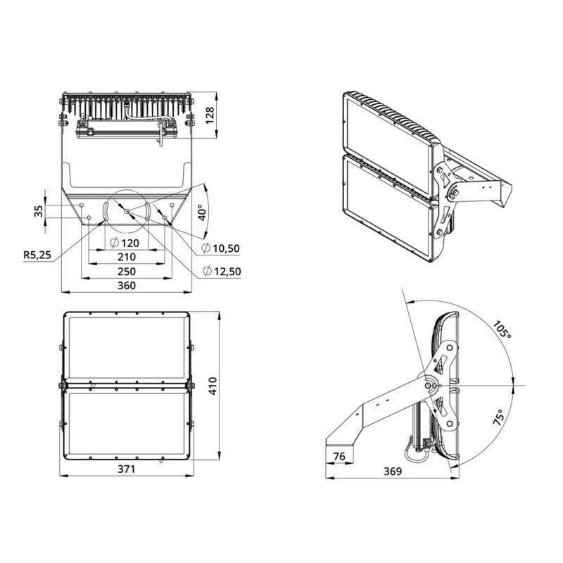 - Мощность: 250 Вт – оптимальный выбор для освещения производственных помещений и открытых площадок. При такой мощности прожектор заменяет натриевые светильники мощностью 1000 Вт.