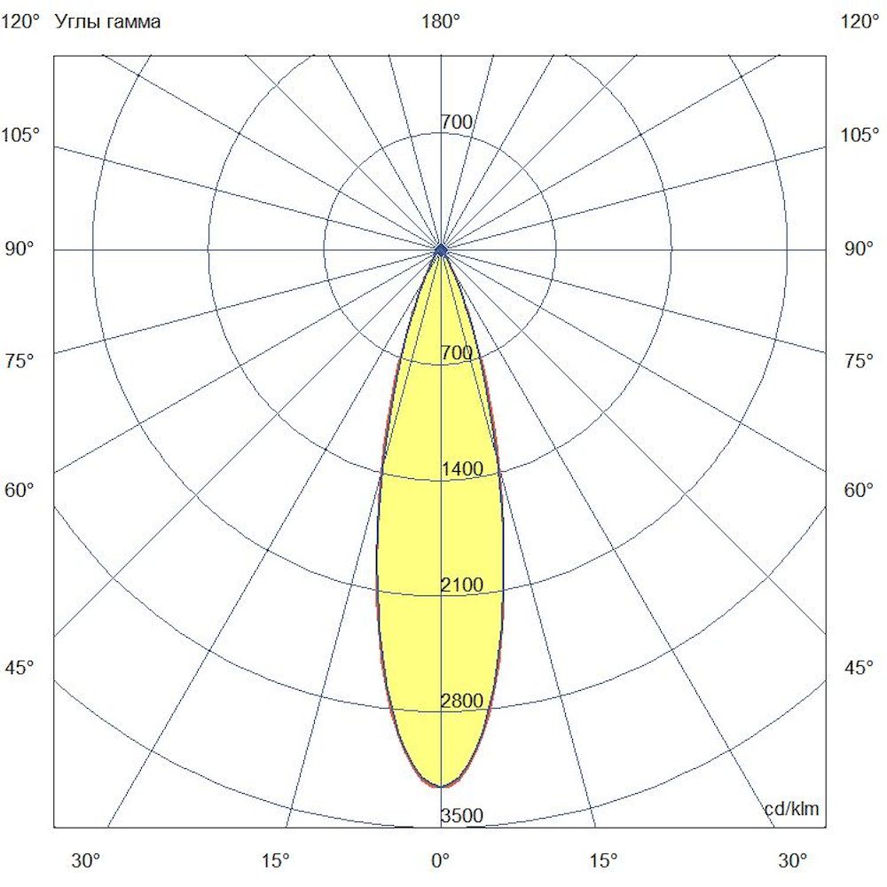 - Кривая силы света (КСС): узконаправленная, с углом рассеивания 25° – создает четкие световые акценты на фасадах зданий