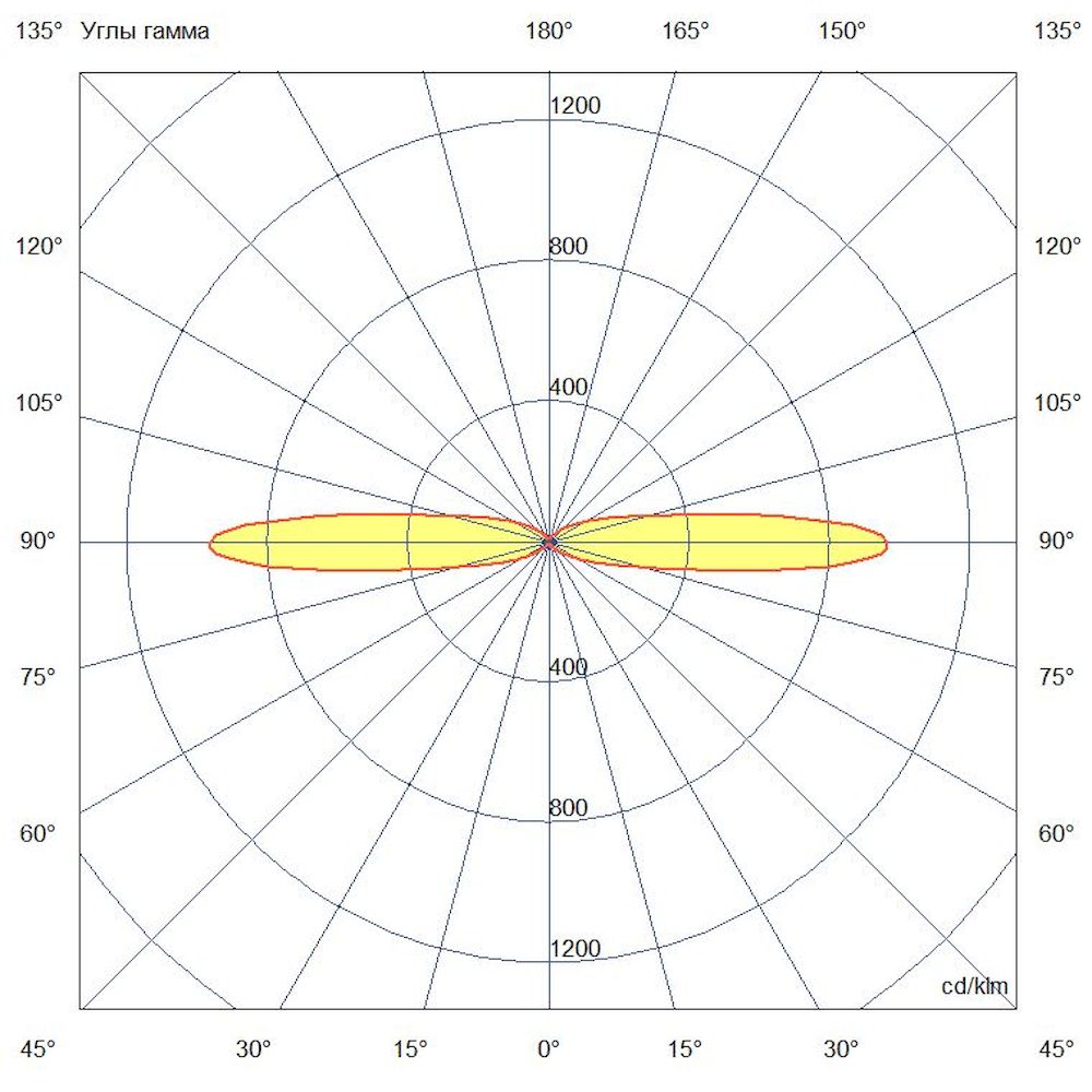 - Кривая силы света (КСС): широкая заливающая (аналог Ш в российской классификации). Обеспечивает равномерное распределение света в пределах 10х65°