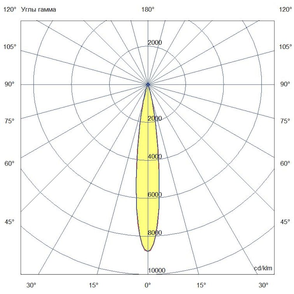 - Кривая силы света (КСС): узконаправленная (15°) — концентрированный световой луч для точечной подсветки объектов