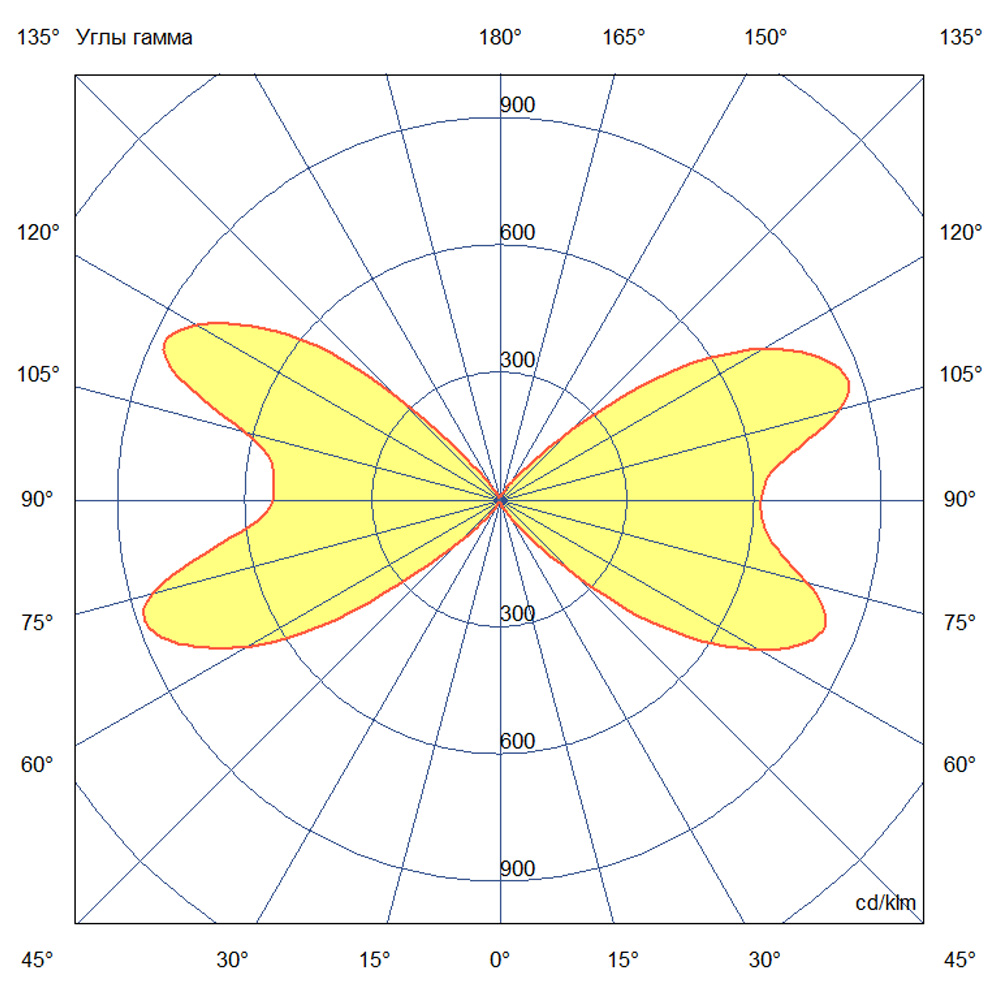 - Кривая силы света (КСС): Косинусная – обеспечивает равномерное распределение светового потока в пределах 90°