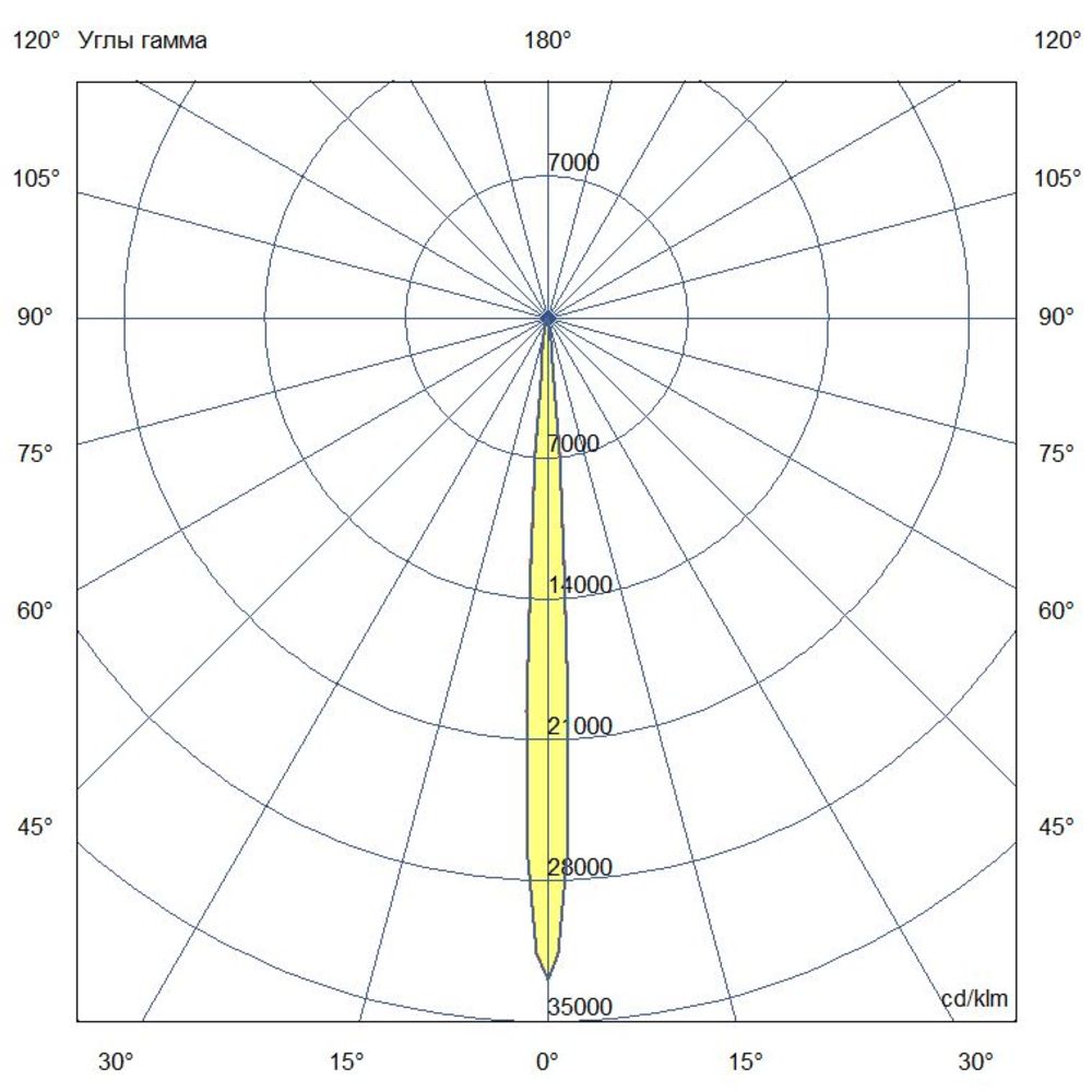 - Кривая силы света (КСС): Концентрированная – предназначена для создания направленного светового потока, соответствует российской классификации глубокой косинусной кривой.