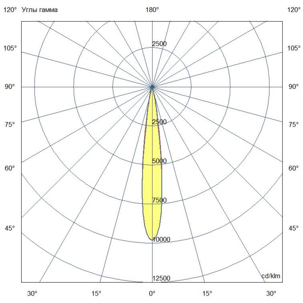 Кривая силы света (КСС) — узконаправленная, концентрированная. По российской классификации относится к типу «Г», что означает глубокую косинусную характеристику. Такая форма диаграммы направлена на максимальную концентрацию светового потока в заданном направлении.