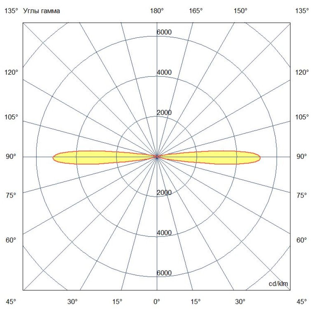Кривая силы света (КСС): концентрированная — согласно российской классификации обеспечивает максимальную концентрацию светового потока в узком секторе.