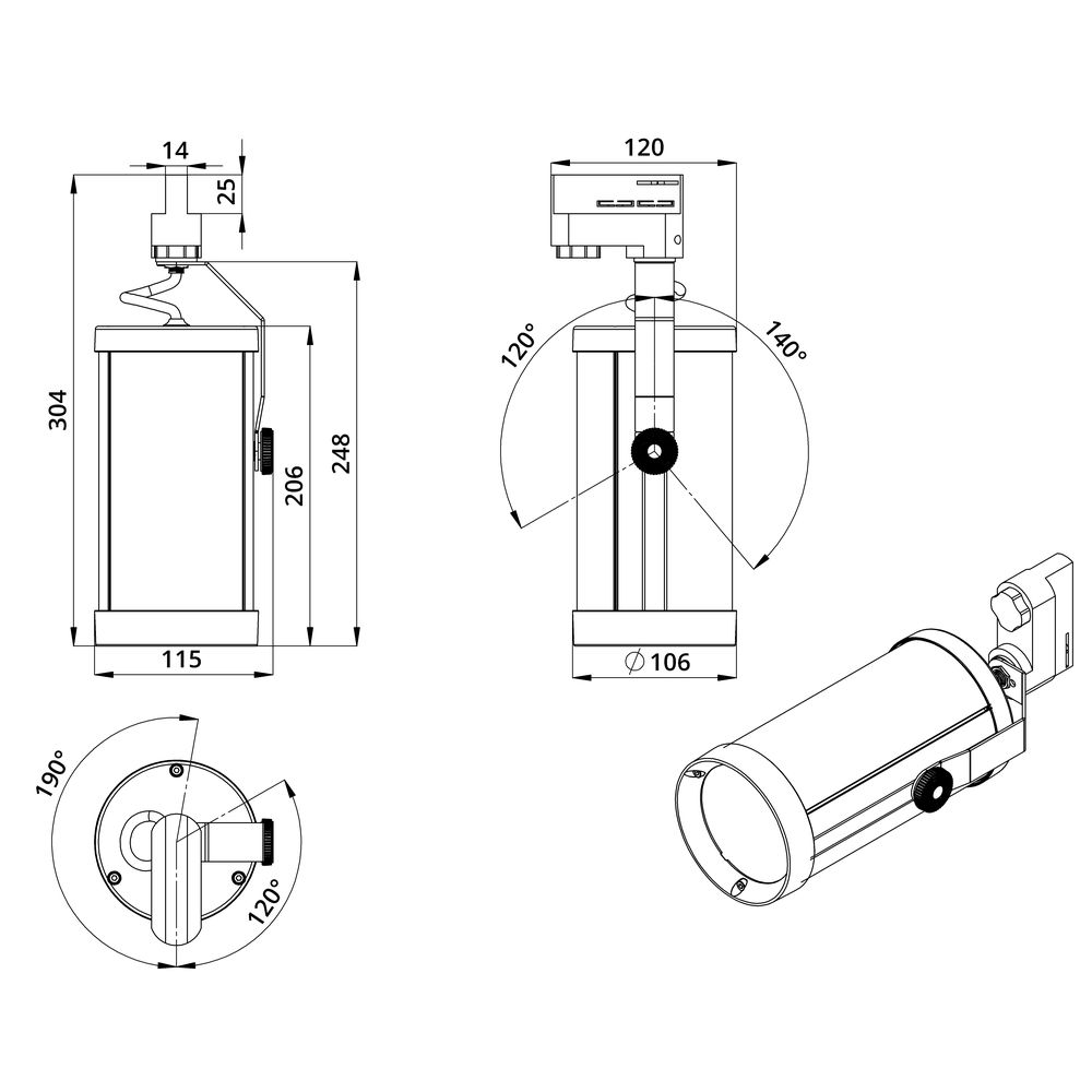 - Точечный световой поток с углом 25° — позволяет эффективно выделять отдельные экспонаты или товары, создавая привлекательную презентацию