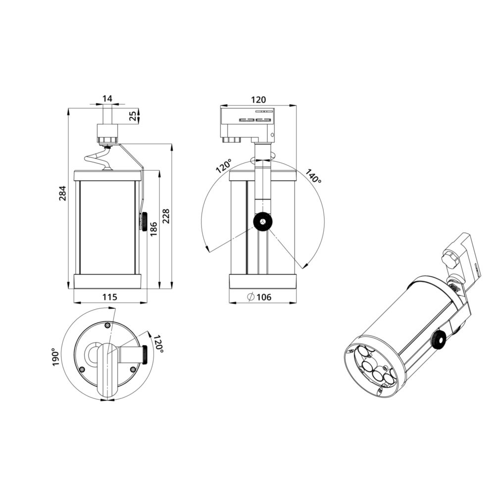 Светодиодный светильник Акцент Трек 16 CRI80 4000К 15° RAL9005 Муар