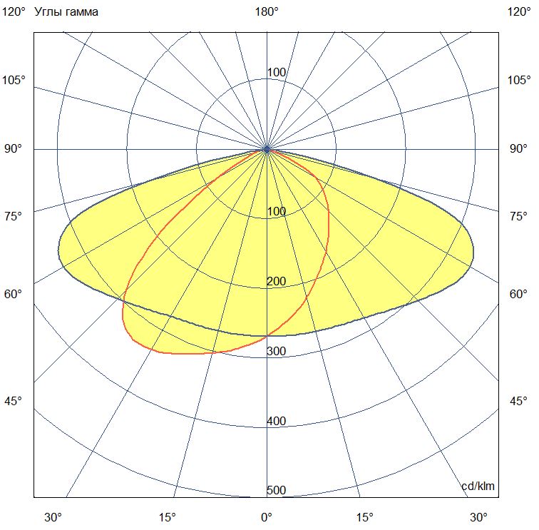 - Кривая силы света (КСС): Широкая трапеция – равномерное распределение светового потока в диапазоне 155х85°