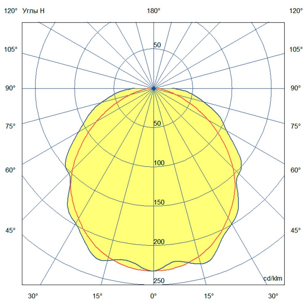 Кривая силы света (КСС) – ДПДА (двусторонняя, преимущественно вдоль оси) по ГОСТу. Такая характеристика делает светильник особенно эффективным для освещения длинных коридоров, производственных линий и складских помещений, где важно равномерное распределение света вдоль помещения.
