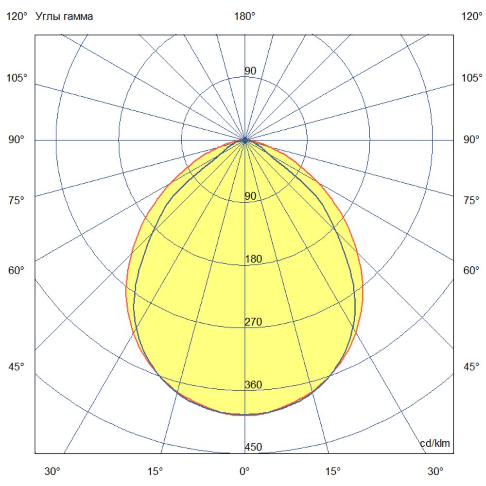 Кривая силы света (КСС) – Двойная асимметричная (ДА), что соответствует российской классификации прямого освещения. Это делает светильник идеальным для освещения рабочих поверхностей, офисных помещений и торговых залов, где требуется равномерное распределение света.