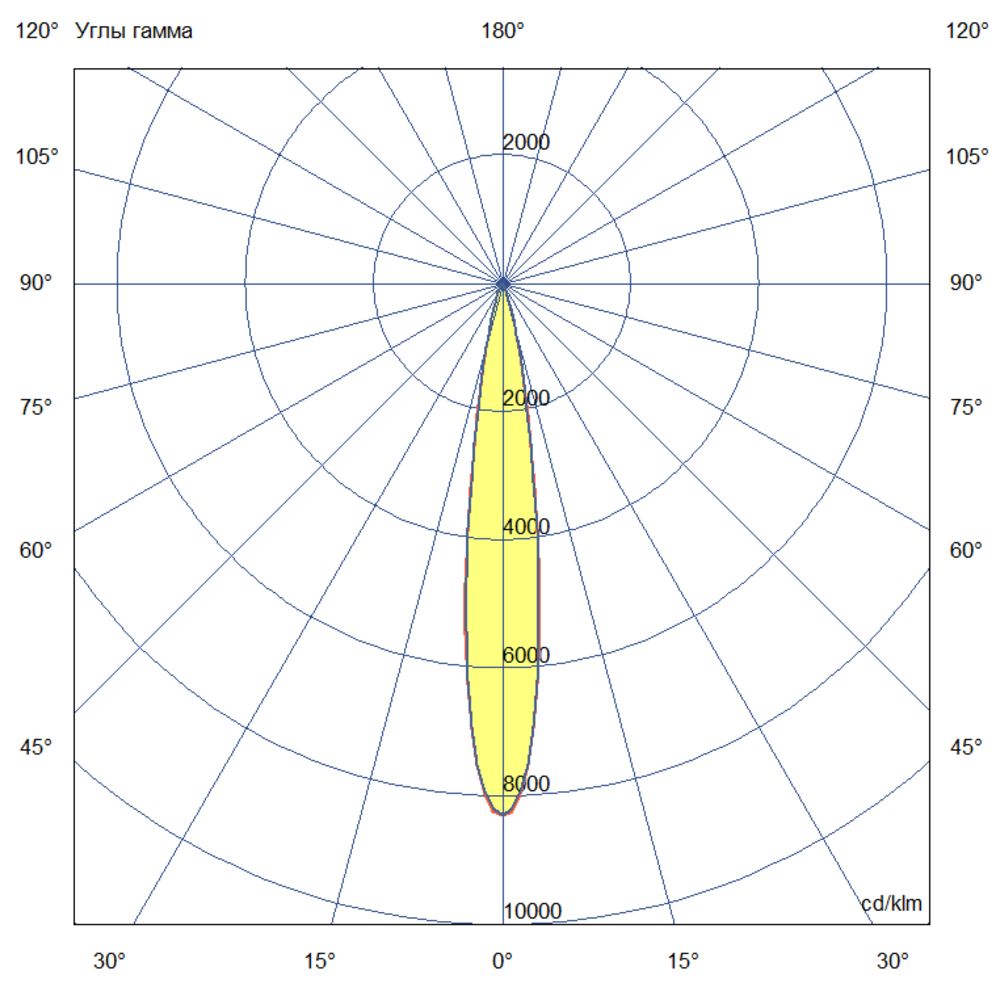 Кривая силы света (КСС): Узкое распределение света (15°) – идеально подходит для акцентного освещения витрин, экспозиций и архитектурных элементов. По российской классификации соответствует типу «косинусная» с узким углом.