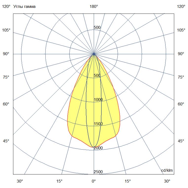 Кривая силы света (КСС): Широкая косинусная — равномерное распределение света в пределах 10х65° идеально подходит для освещения производственных помещений с высотой подвеса до 6 метров.