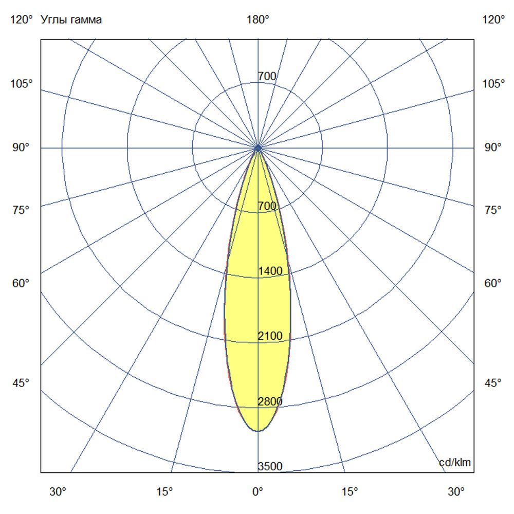 - Кривая силы света (КСС): узконаправленная (25°) — специальная форма диаграммы направленности для акцентного освещения, соответствует российскому стандарту КСС Г-1