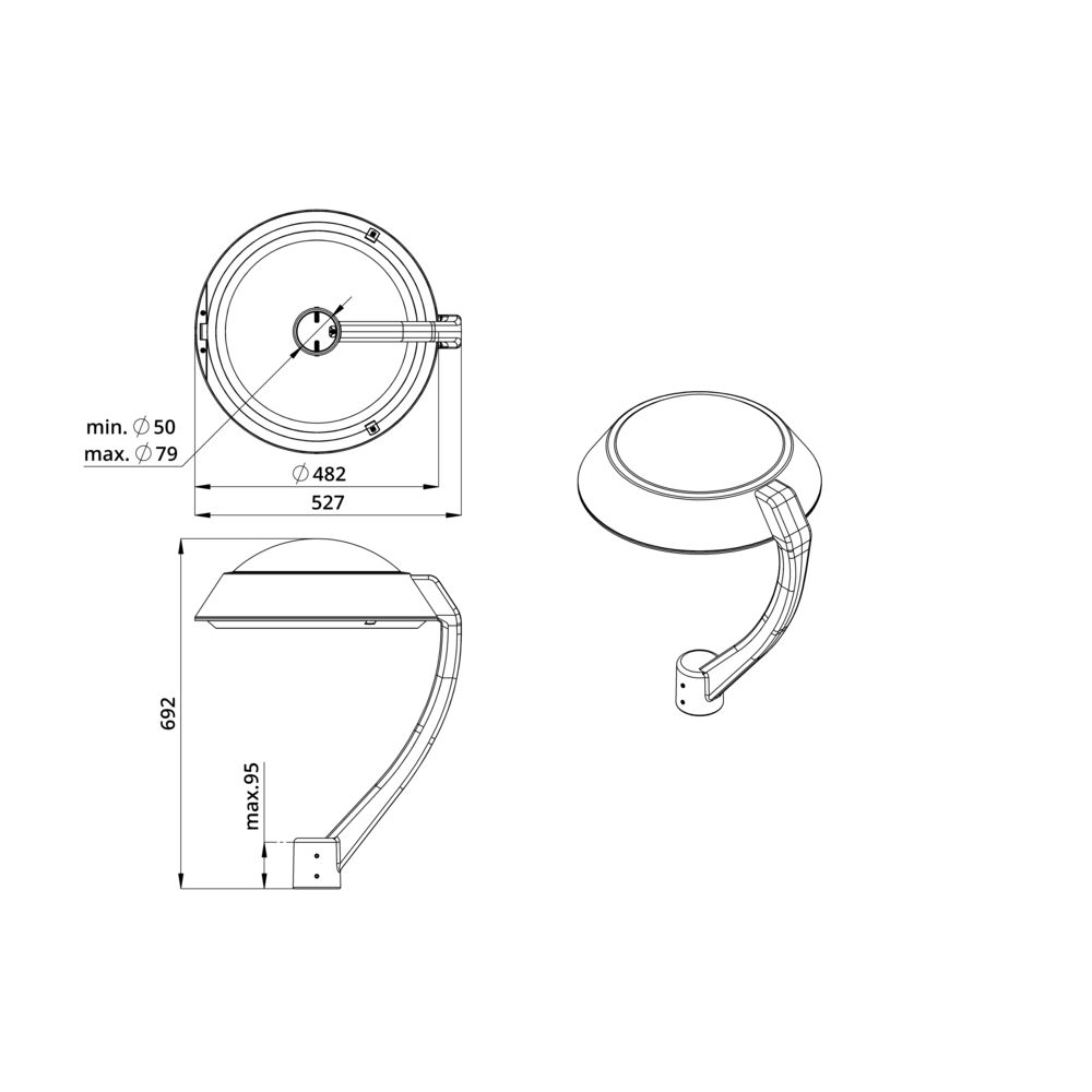 Угол рассеивания: 150°. Максимальный охват освещаемой территории.