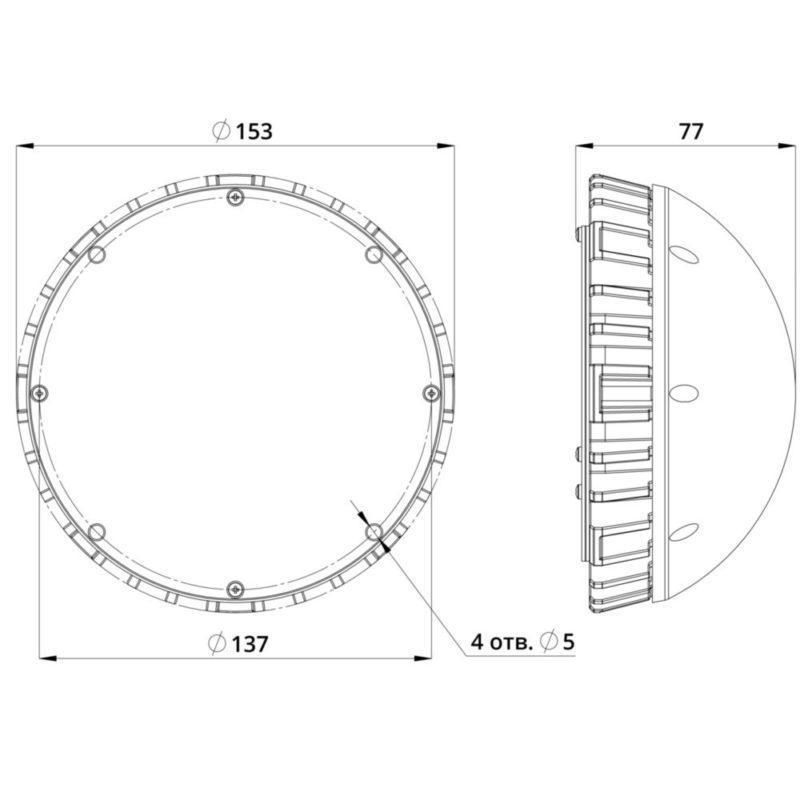 Кривая силы света (КСС) — Д-2 (косинусная), что означает равномерное распределение света во всех направлениях. Такая диаграмма идеально подходит для освещения подъездов, технических помещений и придомовых территорий. Российская классификация КСС гарантирует соответствие нормам освещенности.