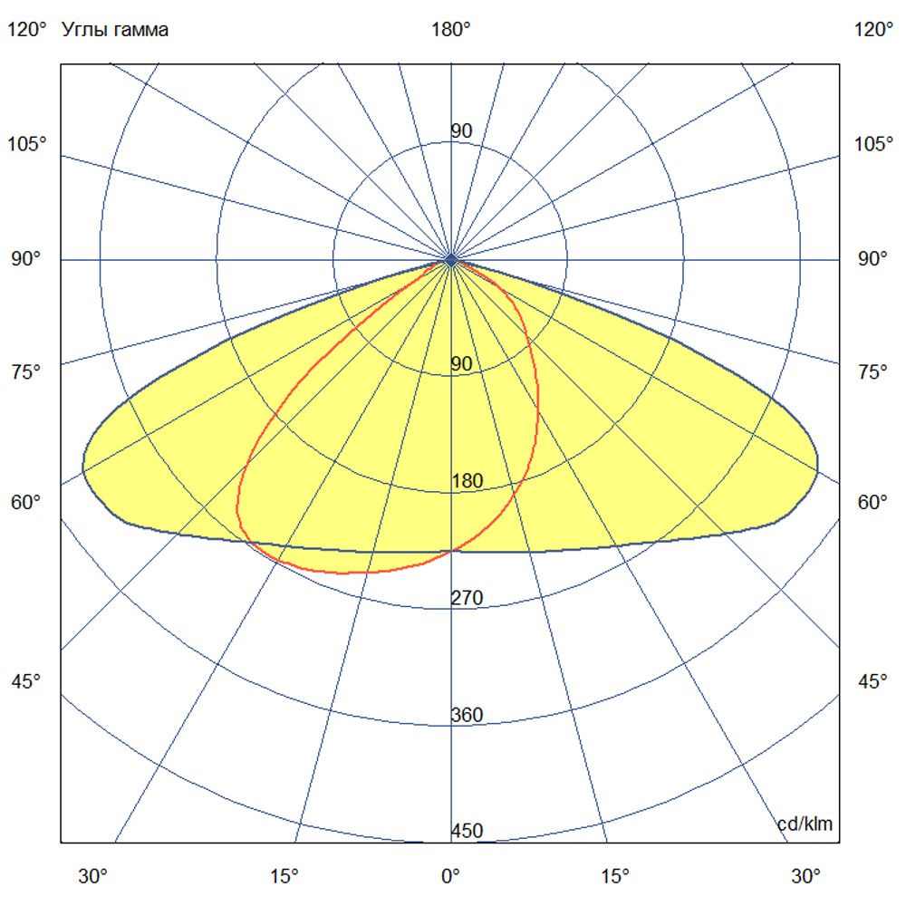 - Кривая силы света: Д (косинусная) — равномерное распределение света в пределах 155° по горизонтали и 70° по вертикали