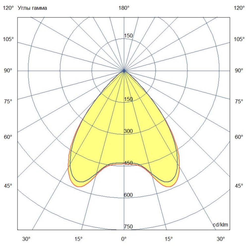 Кривая силы света (КСС) – широкая, с углом рассеивания 90°. По российской классификации относится к типу «Д» (диффузная). Такая КСС обеспечивает равномерное распределение света в больших помещениях, исключая темные зоны.