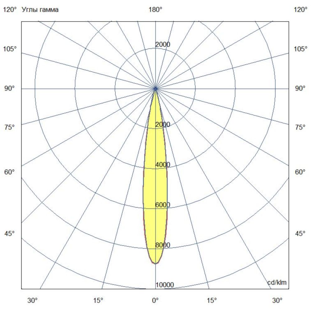 - Оптимальное распределение светового потока благодаря узкому углу рассеивания 15°