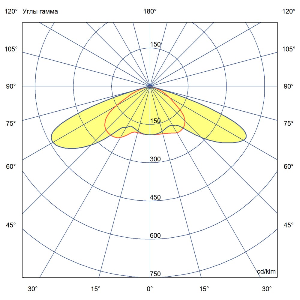 Кривая силы света (КСС): Широкая трапеция (150х90°) по ГОСТ.