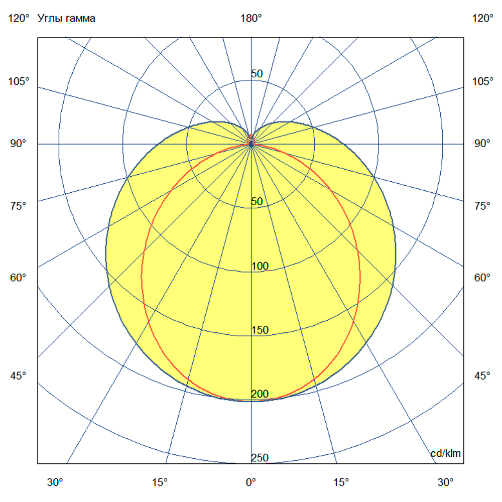 Кривая силы света (КСС) – глубокая с широким углом рассеивания. Такая диаграмма направлена на равномерное распределение светового потока, что особенно важно при архитектурной подсветке фасадов и крупных объектов. Световой поток эффективно охватывает большие площади без образования темных зон.