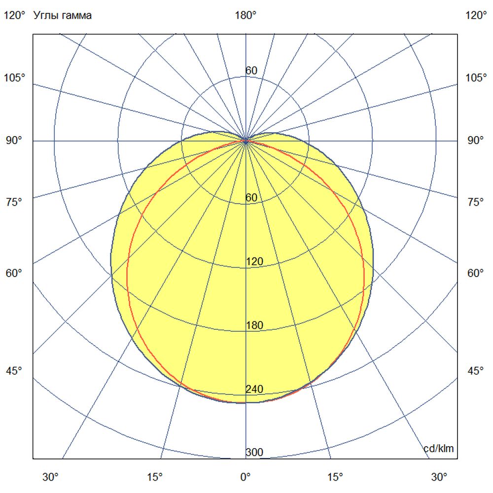 - Кривая силы света (КСС) – широкая косинусная, обеспечивает равномерное распределение светового потока по всей площади помещения