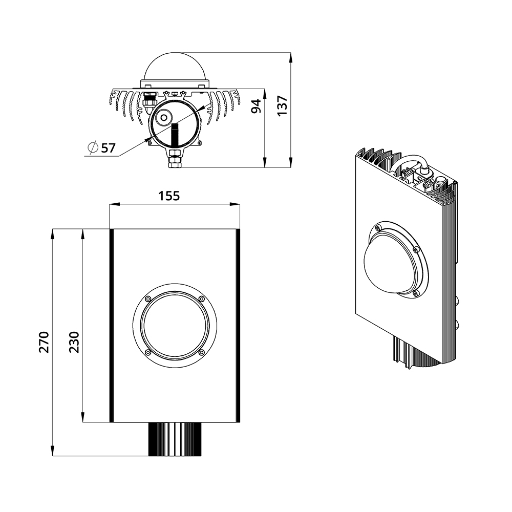 - Угол рассеивания 120° – широкое покрытие территории без образования затемненных зон