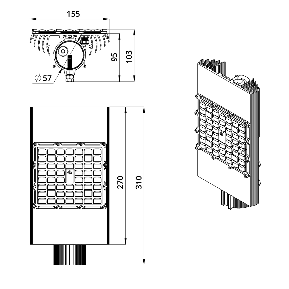 - Мощность 80 Вт — эффективно заменяет натриевые светильники мощностью 250 Вт, обеспечивая экономию до 70% электроэнергии