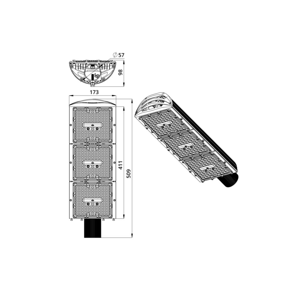 - Кривая силы света (КСС): широкая, линзообразная — эффективно распределяет световой поток для освещения магистралей и промышленных территорий