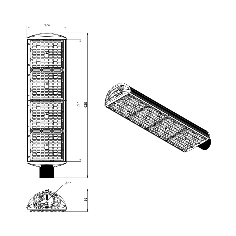 - Мощность: 200 Вт – оптимальное соотношение мощности и освещенности позволяет существенно сократить энергозатраты по сравнению с устаревшими натриевыми аналогами