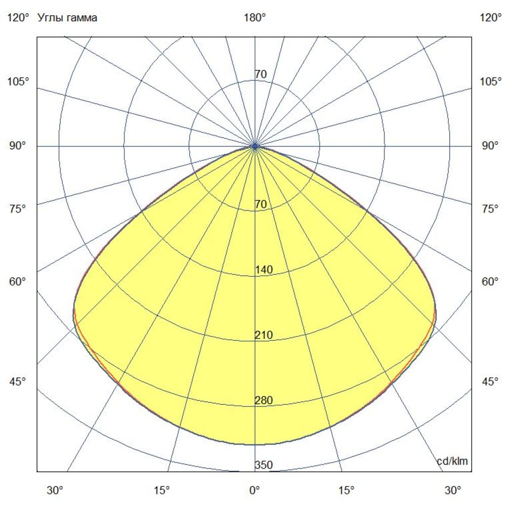 - Кривая силы света (КСС): широкая — обеспечивает равномерное распределение светового потока по всей площади освещения, соответствует требованиям к освещению магистральных территорий