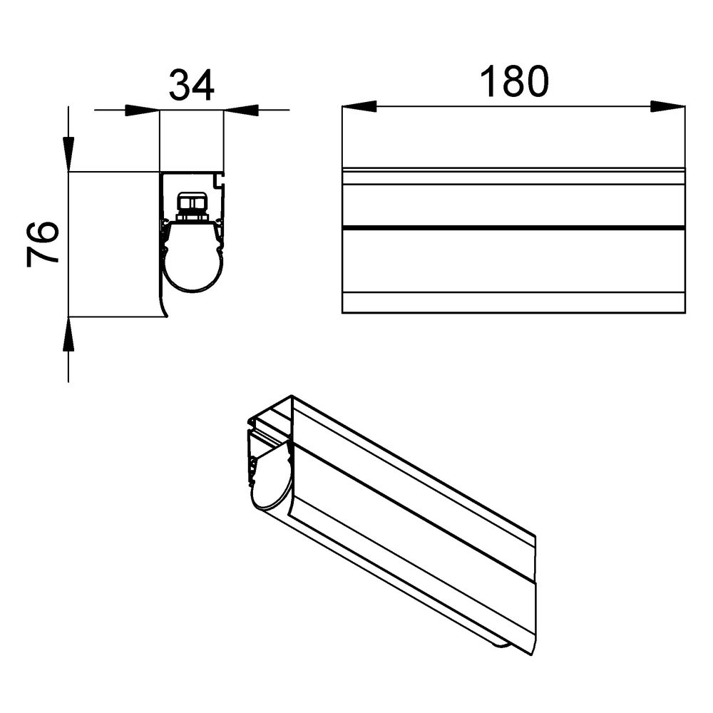 Светодиодный светильник Модерн v2.0 1 180мм (6Вт/м) 24В DC CRI80 3000К Опал (Профиль, козырек, транзитное штепсельное соединение)