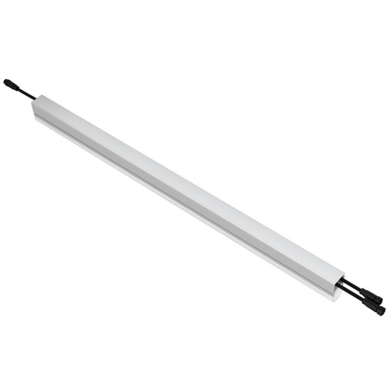 Транзитное штепсельное соединение значительно упрощает монтаж и демонтаж при необходимости обслуживания или ремонта. Профиль из анодированного алюминия с матовым опаловым рассеивателем обеспечивает равномерное распределение света без бликов.