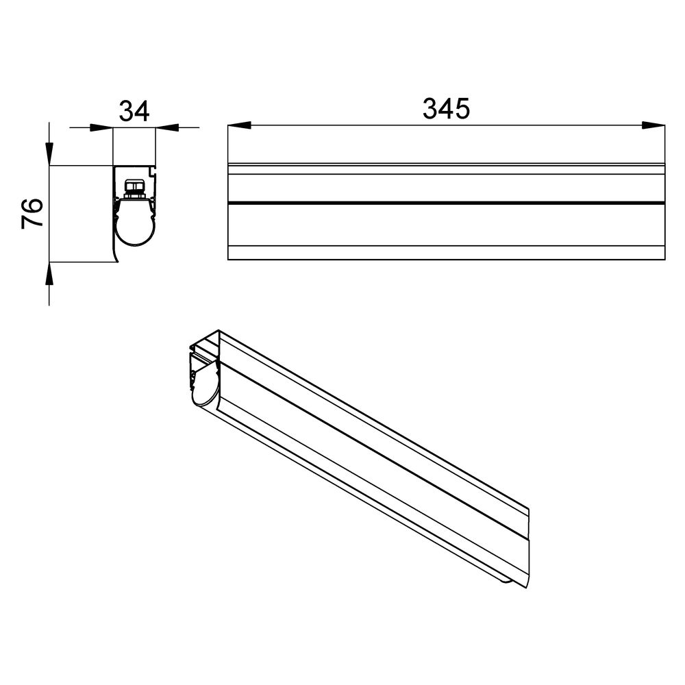 Светодиодный светильник Модерн v2.0 3 345мм (9Вт/м) 48В DC CRI80 5000К Опал (Профиль, козырек, транзитное штепсельное соединение)