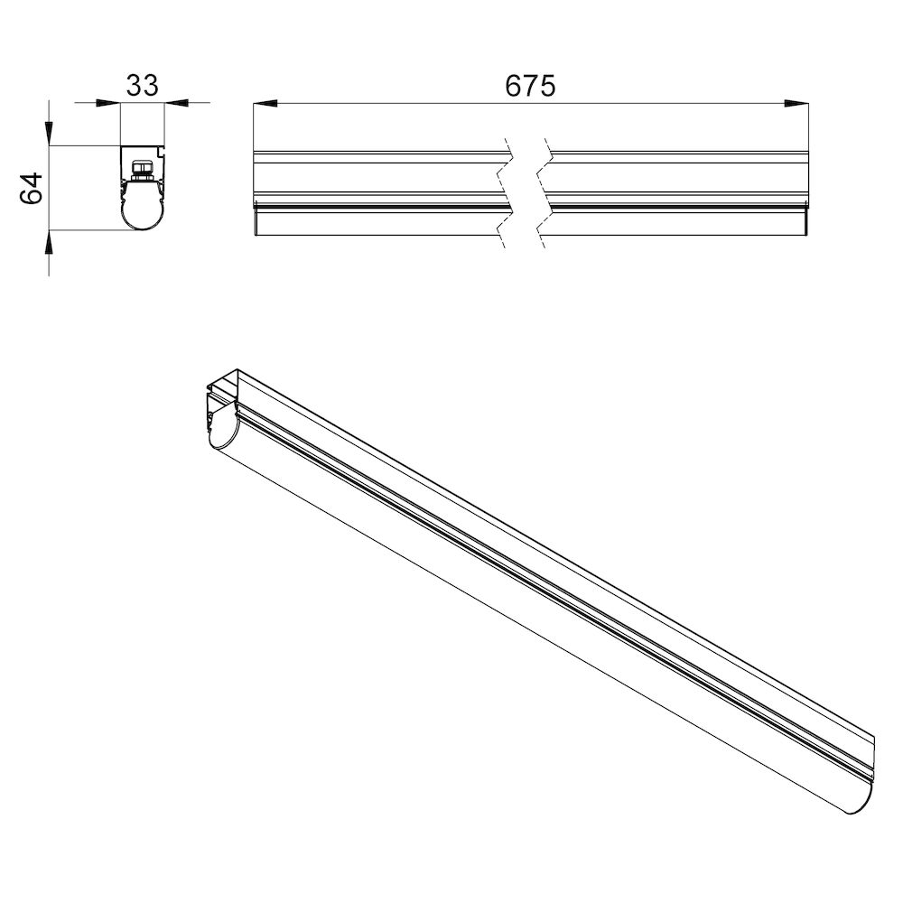 Светодиодный светильник Модерн v2.0 4 675мм (6Вт/м) 24В DC CRI80 5000К Опал (Профиль, транзитное штепсельное соединение)