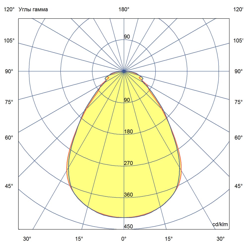 - Кривая силы света (КСС) — Д (Диффузная) создает равномерное освещение всей площади помещения, исключая резкие тени