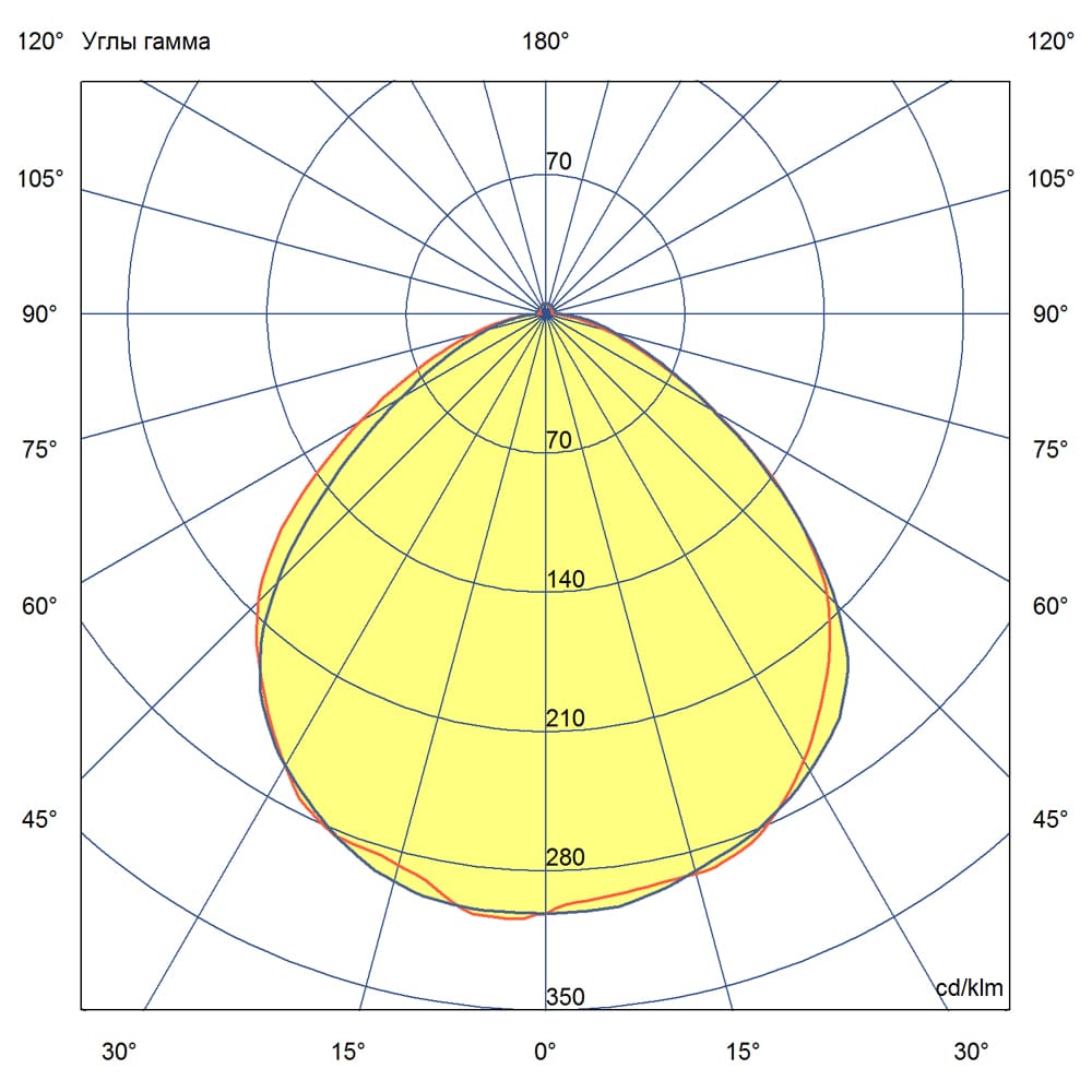 - Кривая силы света: Косинусная — обеспечивает равномерное распределение света по всей площади помещения
