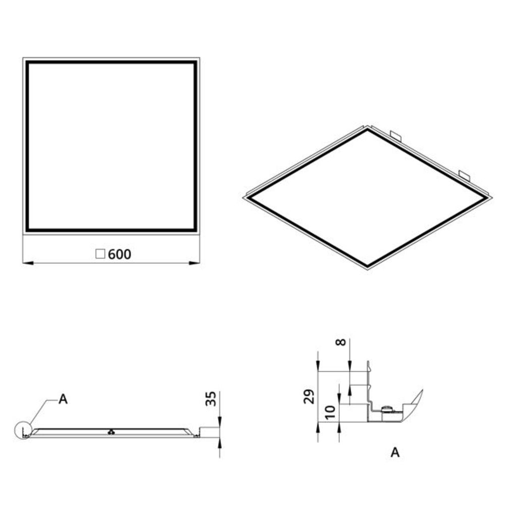 Установка осуществляется методом Clip-In, что делает монтаж простым и быстрым даже в существующие подвесные потолки типа «Армстронг». Размеры 600х600х35мм позволяют легко заменить старые люминесцентные светильники без демонтажа потолочной системы.