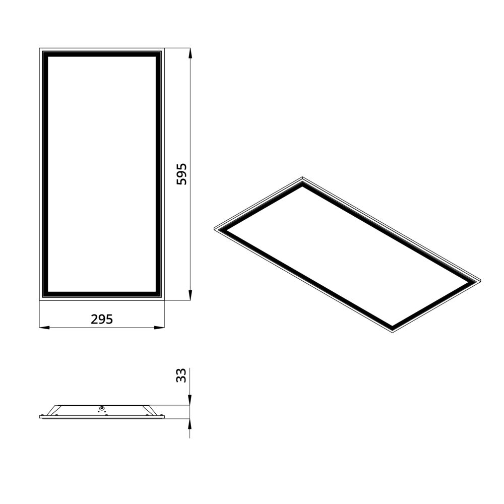 - Габаритные размеры – 595х295х33мм. Компактные размеры позволяют легко заменить устаревшие люминесцентные светильники без демонтажа существующей системы подвеса