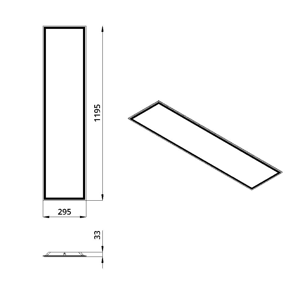 Габаритные размеры 1195х295х33 мм позволяют эффективно использовать пространство подвесного потолка и легко интегрировать светильники в существующую систему освещения.